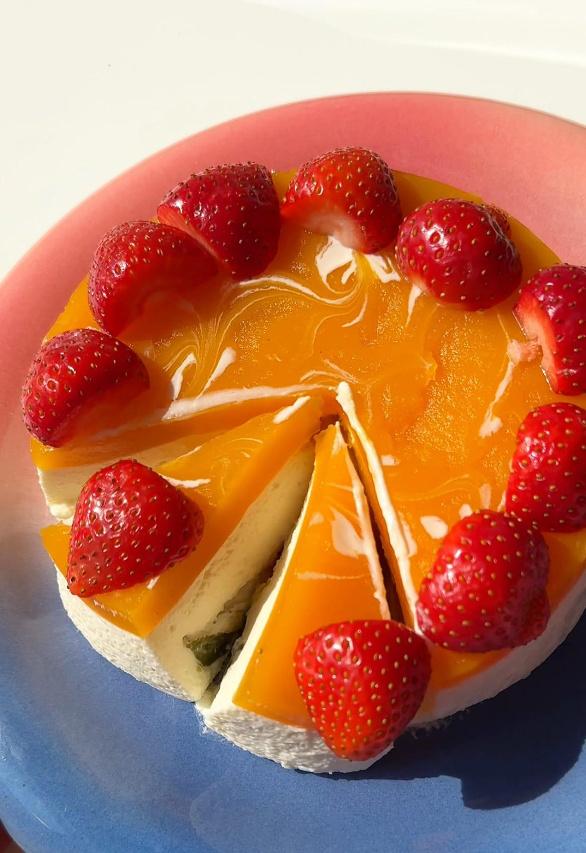 Znacie ten klasyczek z mozaiką z galaretek, ale to wersja MŁODZIEŻOWA. To coś pomiędzy serniczkiem na zimno i panna cottą z zanurzonymi domowymi galaretkami z mango i matchy.