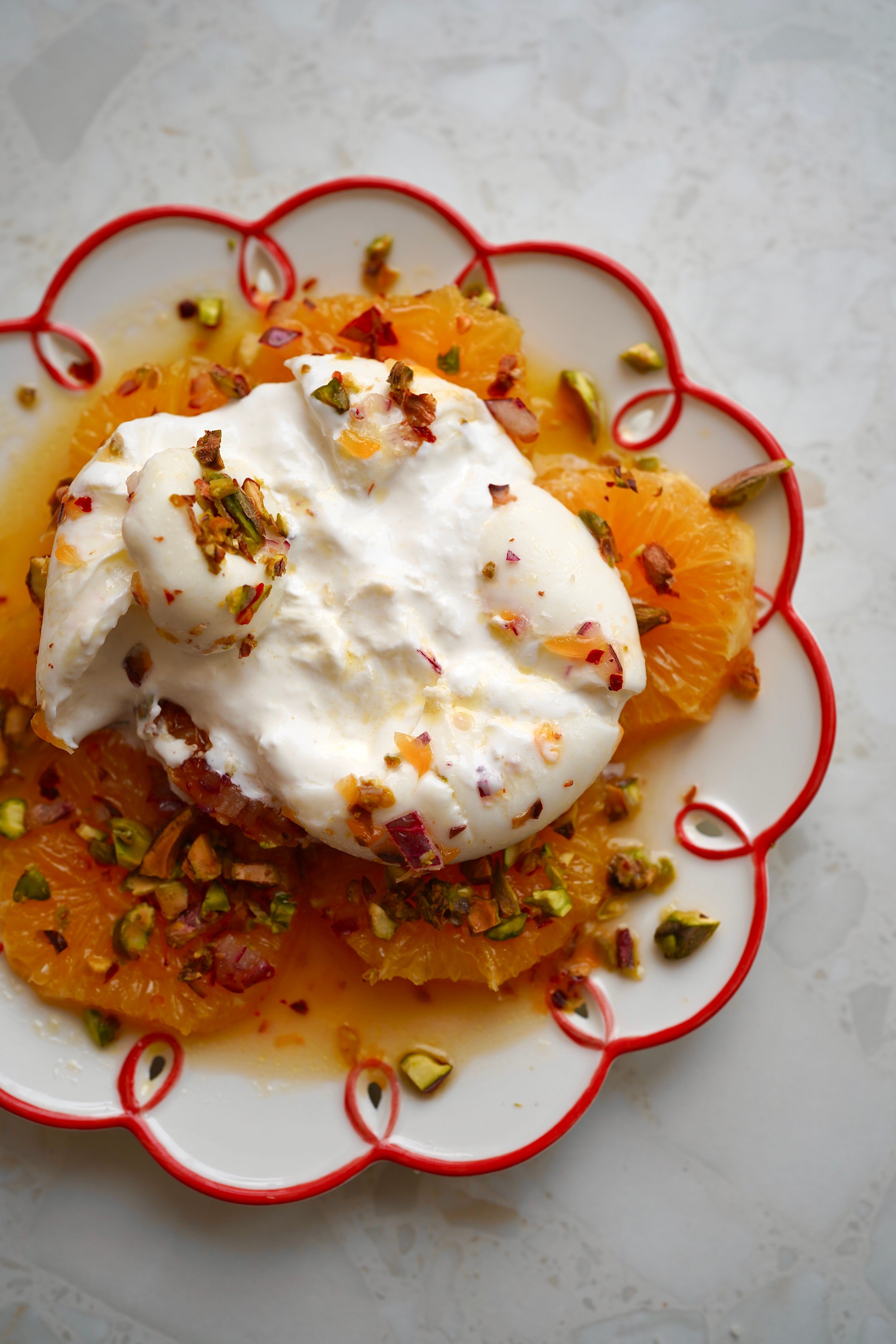 Pomarańcze/burrata/pistacje (1-2 porcje) ≈ 22,30 zł
