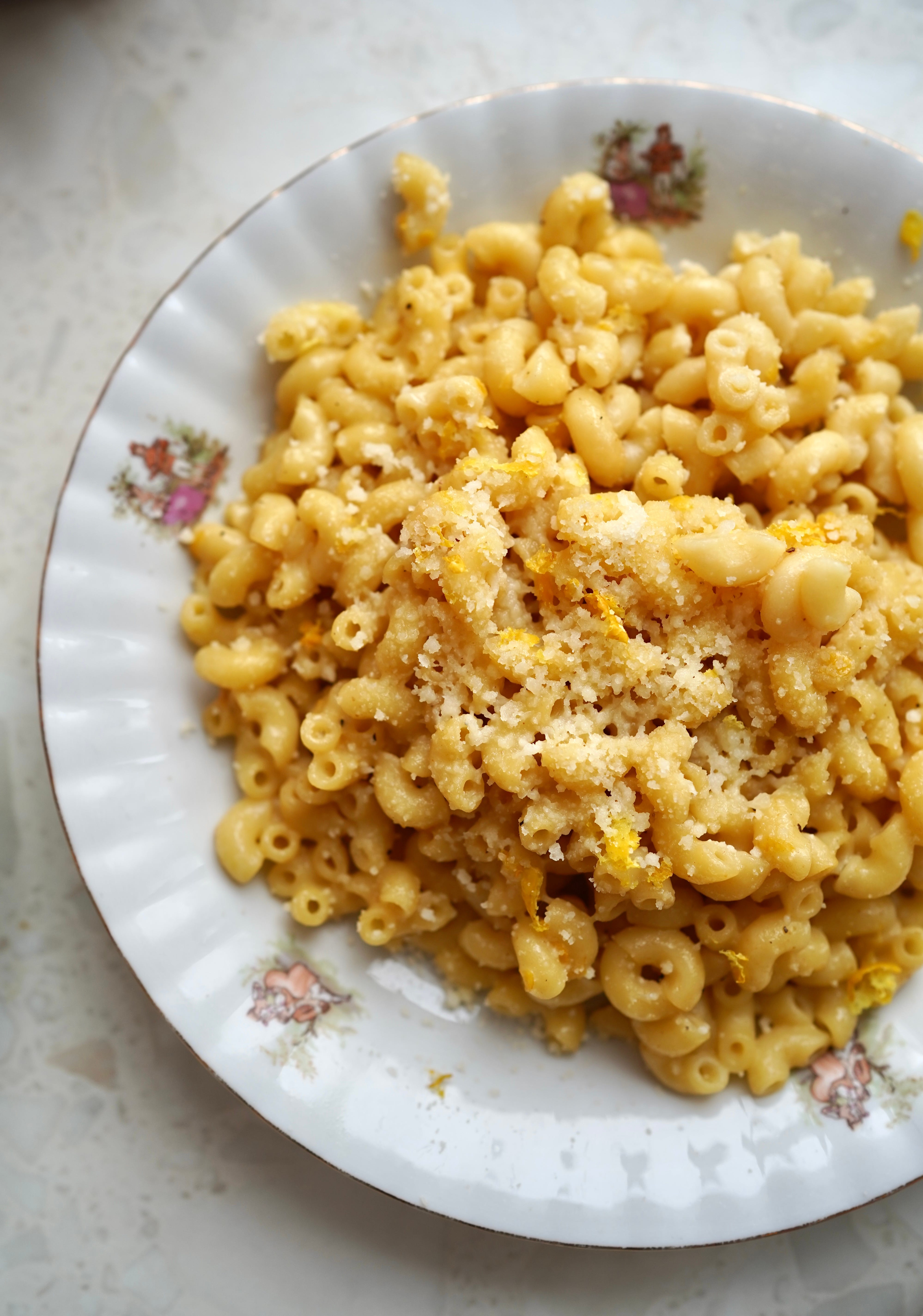 Wrzuć makaron, dodaj wodę z gotowania, żeby sos był jedwabisty. Dopraw pieprzem od serca. Podawaj ze startym pecorino kub grana padano i skórką z cytryny.